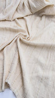 Neutral Stretchy Crinkle Cotton Fabric, Textured Surface, Off White Handwoven Cotton, Semi Sheer, Unbleached, Organic, Raw Cotton Handwoven Fabrics For Summer, Beach Collections, Gold Pin Stripes.